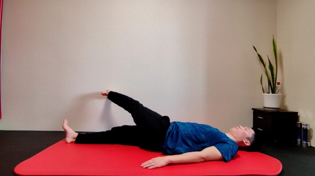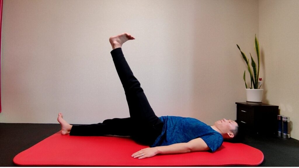 足はあまり高く挙げず、坐骨神経にストレッチが加わわらないことがポイントです。