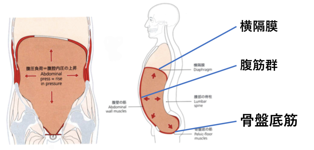 人の体の構造として、体幹は背骨や腹筋群などの筋力だけで支えられているのではなく、この圧力による力によっても支えられているのです。